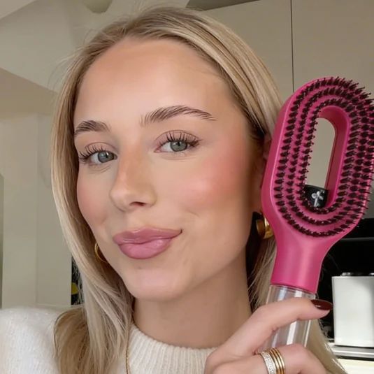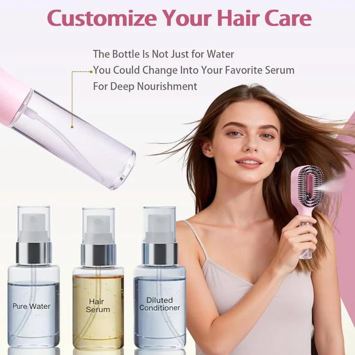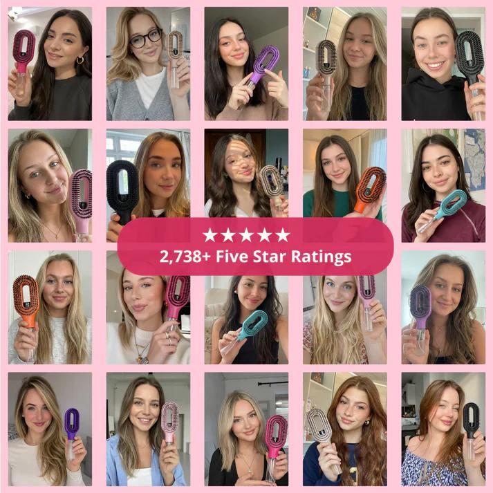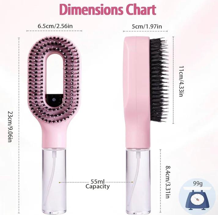 Die flexiblen Borsten entwirren sanft ohne Ziehen, während die Sprühfunktion das Haar glättet und Frizz reduziert für einfaches Styling.